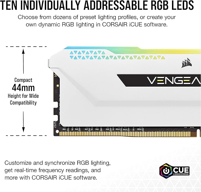 Cette mémoire se distingue par un look moderne blanc, sublimé par un rétroéclairage ARGB adressable, entièrement personnalisable via les logiciels compatibles (ASUS Aura Sync, MSI Mystic Light, Gigabyte RGB Fusion, etc.).