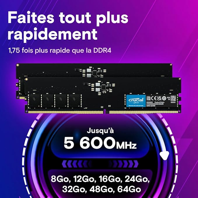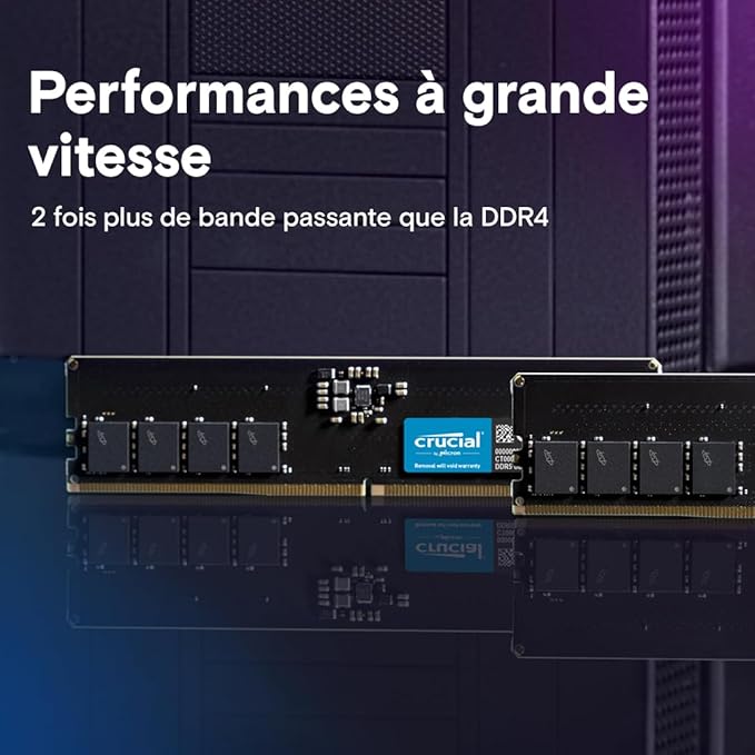 Cette barrette DDR5 est conçue pour offrir une montée en performance fluide, une stabilité exemplaire et une compatibilité élargie avec toutes les plateformes modernes, que ce soit Intel ou AMD. Idéale pour une configuration polyvalente, orientée gaming, multitâche ou création de contenu.